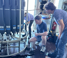 Sarmiento de Gamboa crew & scientist work together to prepare the snow catcher (particle collection device) and the CTD rosette.